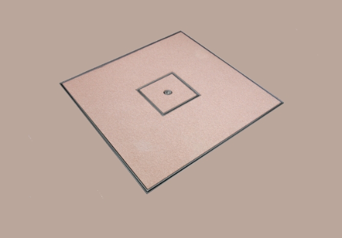 deksel bedekt met gegoten steentegel, met vierkant kabeluitlaatdeksel